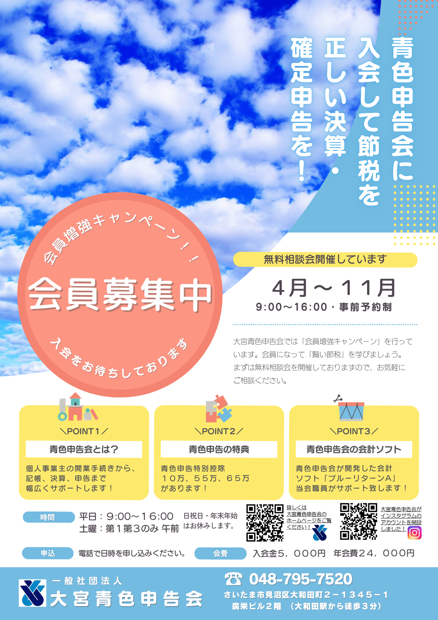 大宮青色申告会では「会員増強キャンペーン」を行っています。